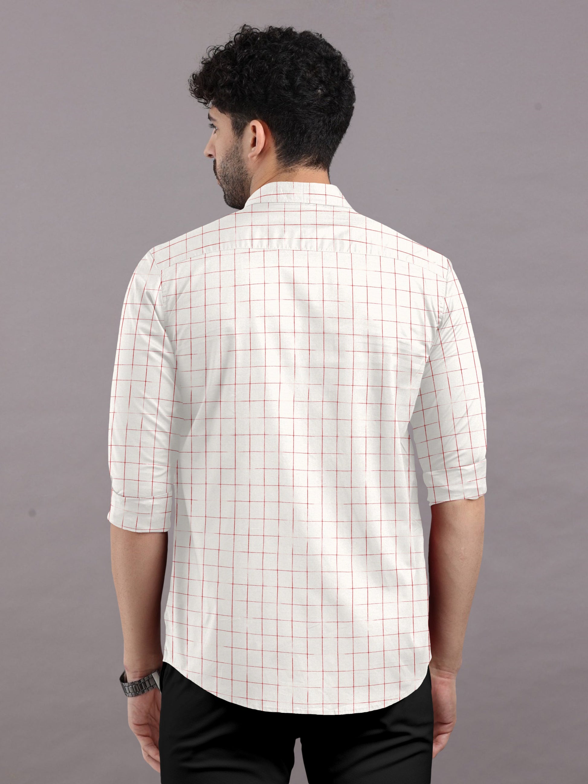 A refined check print on alluring white shirt exhibiting a classy look. Pure Giza cotton light fabric, both stylish and easy to carry all day.