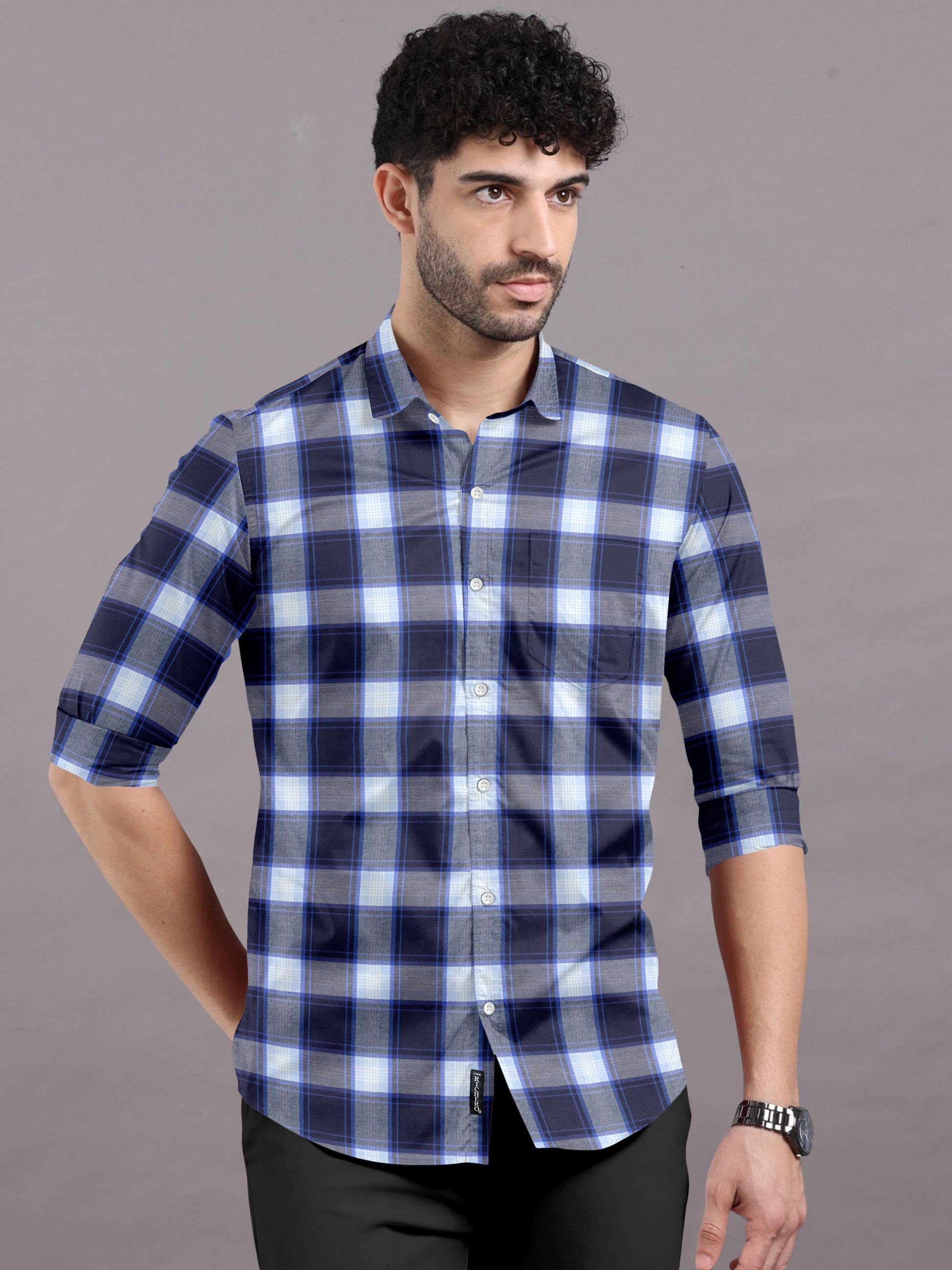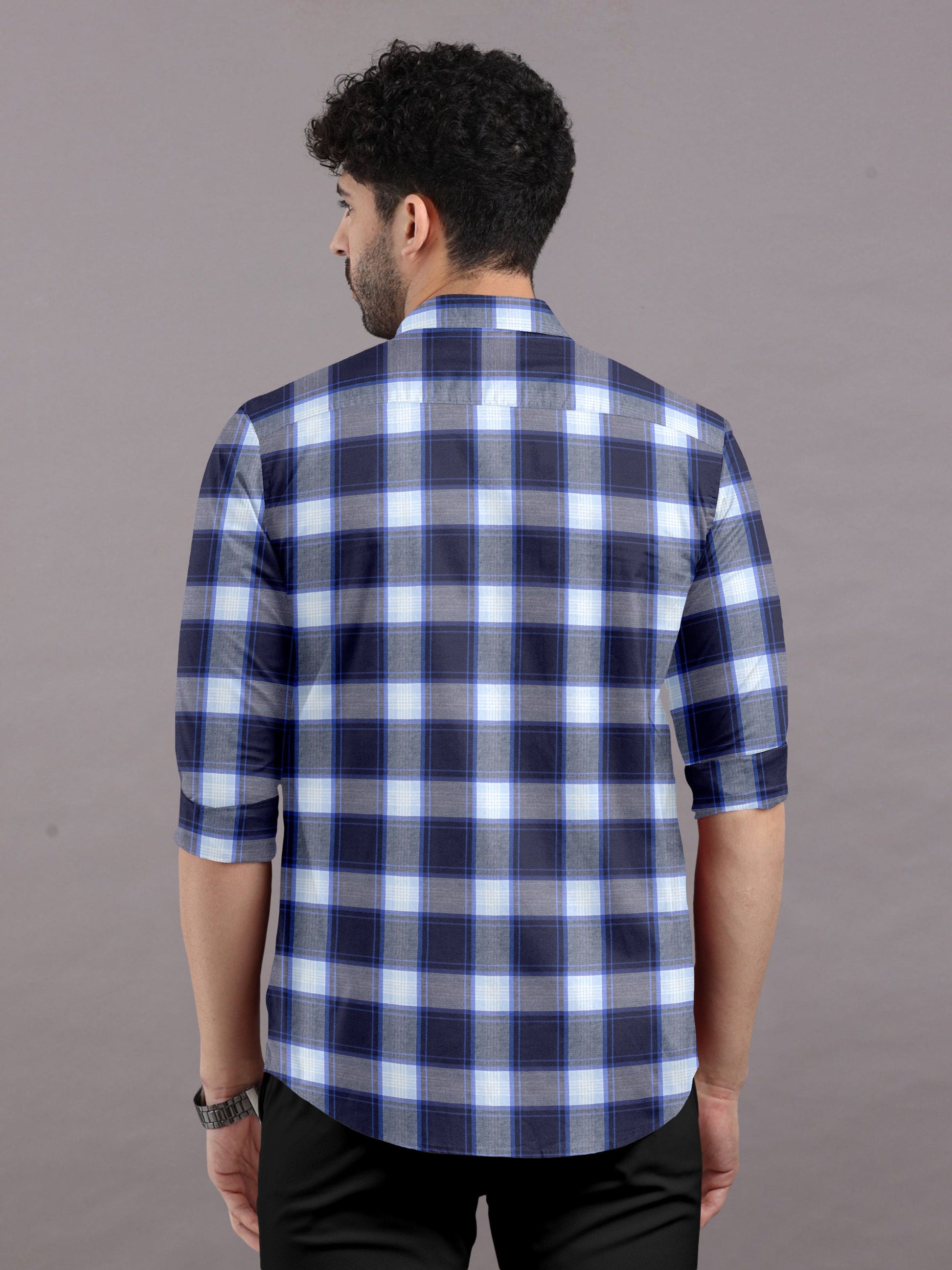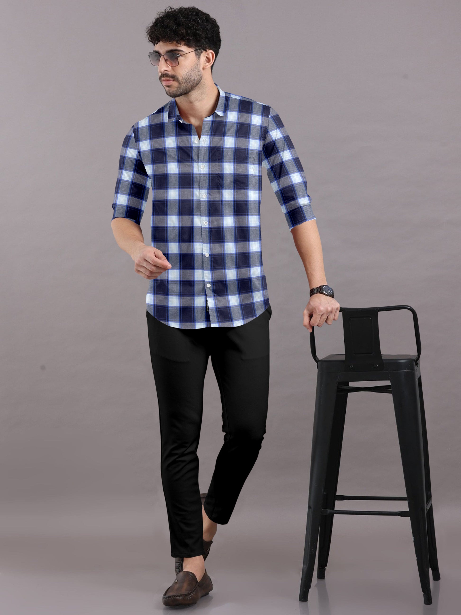 Classic Navy Blue & White Checks Shirt